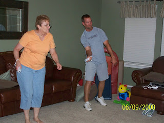 Okay, my mom will probably be thoroughly embarrassed by these pictures but they were just too good to keep to myself! After getting back from Alabama Monday night we got Rylan into bed and it was time to break out the Wii. We had been sitting in a car for 12 hours and we were all ready for some action. We played several games of bowling and tennis. My mom really got into it as you can see by the pictures. Cody spent most of the evening in tears laughing at my mom and I but we had so much fun!!